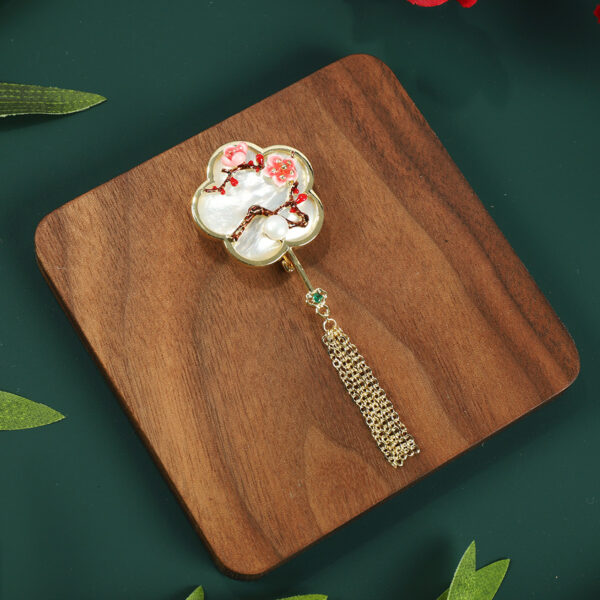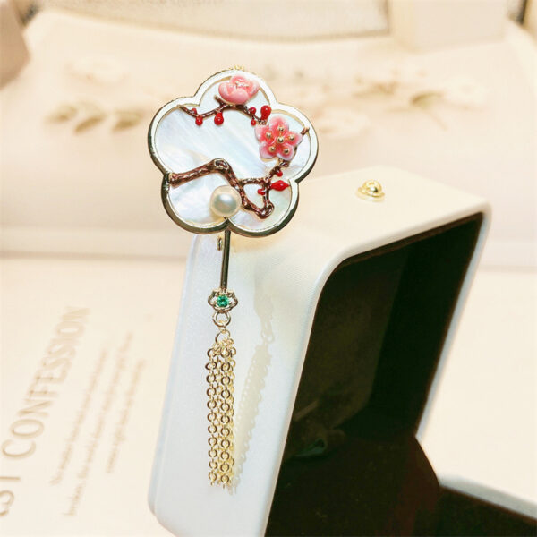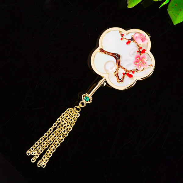 Trâm Cài Áo Chiếc Quạt Hoa Tua Rua Đính Ngọc Trai