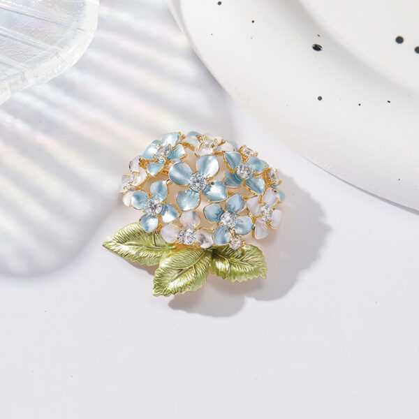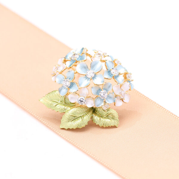 - Hoa và lá: Được tráng men xanh tinh xảo, tạo hiệu ứng màu sắc sống động và bền màu, làm nên vẻ đẹp độc đáo của chiếc trâm cài áo hoa cẩm tú cầu.