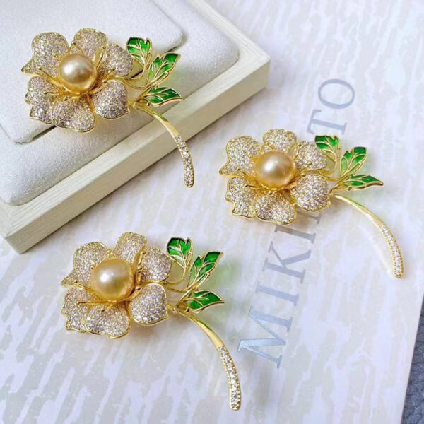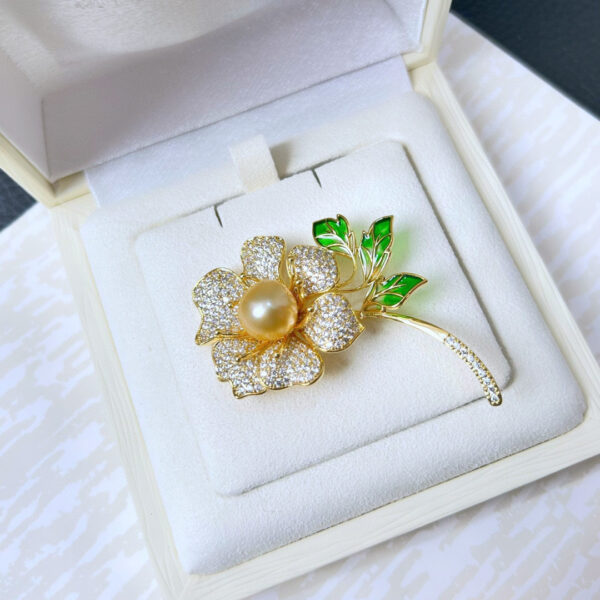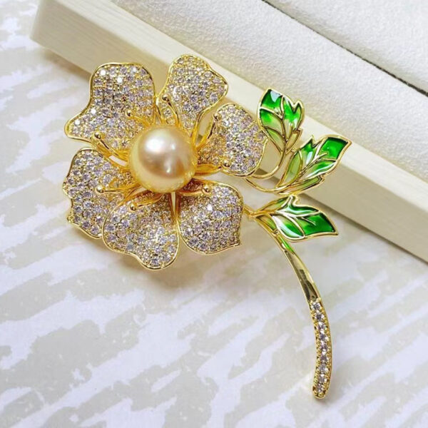 - Ngọc trai ánh kim tự nhiên: Điểm nhấn đặc biệt của trâm cài áo hoa là những viên ngọc trai ánh kim tự nhiên, mang đến vẻ đẹp sang trọng và quý phái. Ngọc trai ánh kim có màu sắc và ánh sáng đặc trưng, tạo nên sự khác biệt và đẳng cấp cho sản phẩm.