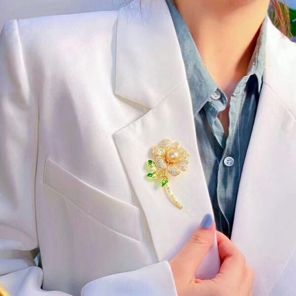 Trâm cài áo hoa đính ngọc trai ánh kim cao cấp không chỉ là một món trang sức, mà còn là một tuyên ngôn về phong cách và đẳng cấp của người sở hữu.