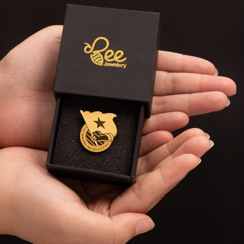 - Mạ vàng 24K sang trọng: Áp dụng công nghệ xi mạ điện tiên tiến nhất, bề mặt huy hiệu được phủ một lớp vàng 24K dày dặn, mang lại vẻ ngoài lấp lánh, trang trọng và khả năng giữ màu cực lâu.
