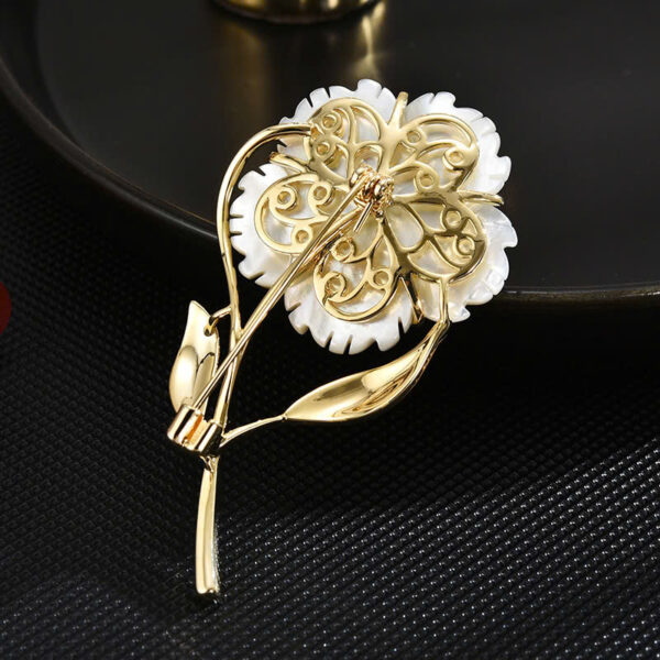 Hãy tưởng tượng, trên vạt áo lụa mềm mại, hay cổ áo vest trang nhã, chiếc cài áo hoa mai trắng điểm xuyến nhẹ nhàng, tỏa sáng dịu dàng. Cánh hoa mai được chế tác tỉ mỉ từ những mảnh vỏ ốc xà cừ quý hiếm, với ánh xà cừ óng ánh độc đáo, mang đến vẻ đẹp tự nhiên, thanh khiết và vô cùng thu hút. Mỗi cánh hoa là một tác phẩm nghệ thuật nhỏ, phản chiếu ánh sáng một cách tinh tế.