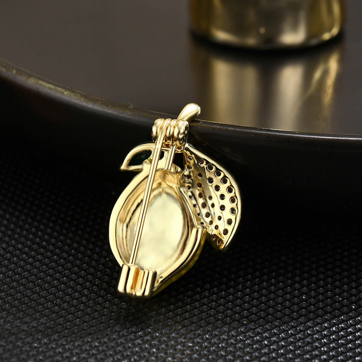 Chất liệu hợp kim cao cấp cùng lớp mạ vàng 18K sáng bóng, bền màu, thể hiện đẳng cấp và gu thẩm mỹ tinh tế. Quả chanh được tráng men tỉ mỉ, màu sắc sống động, kết hợp với những viên đá kim cương nhân tạo lấp lánh, tạo nên vẻ đẹp sang trọng và quyến rũ.