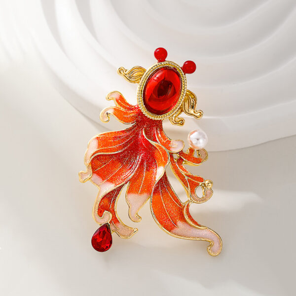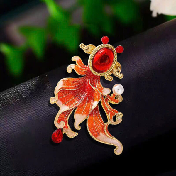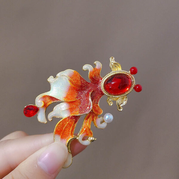 Trâm Cài Áo Cá Vàng Long Châu Đính Đá Ruby