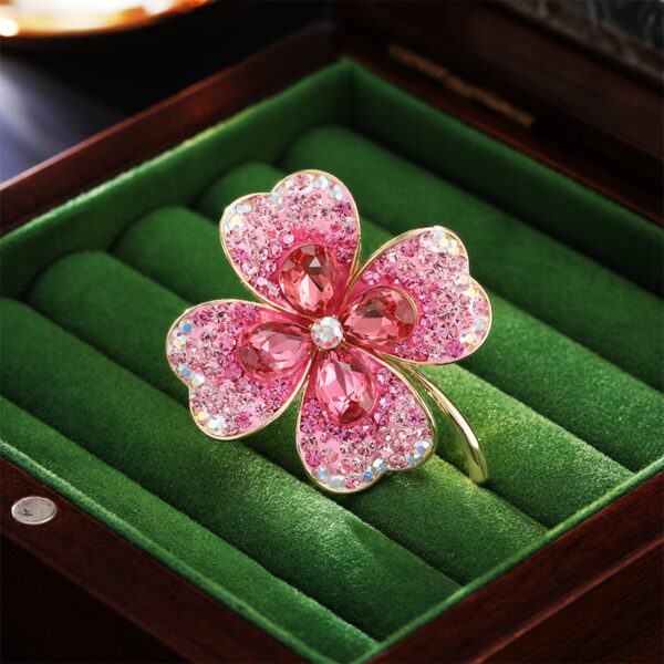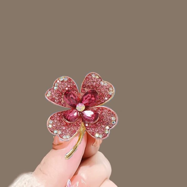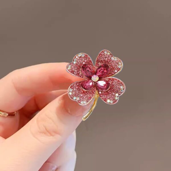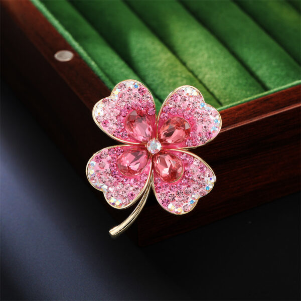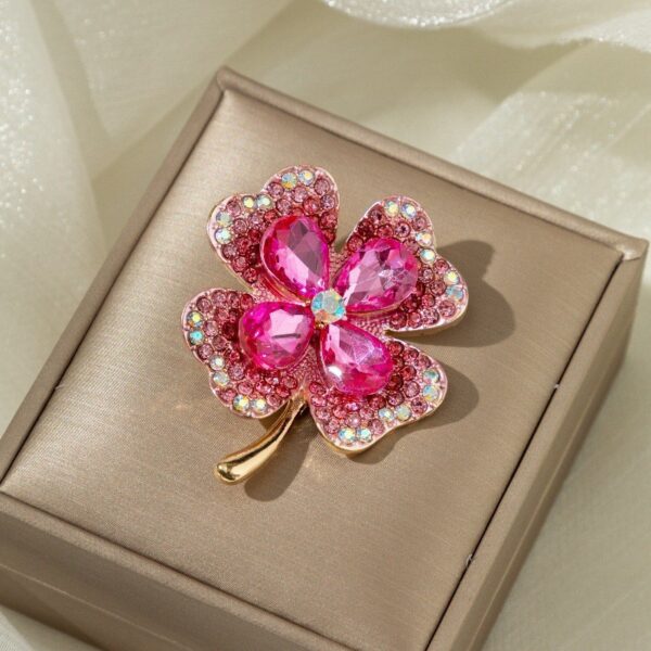Trâm Cài Áo Cỏ 4 Lá Đính Phale Hồng
