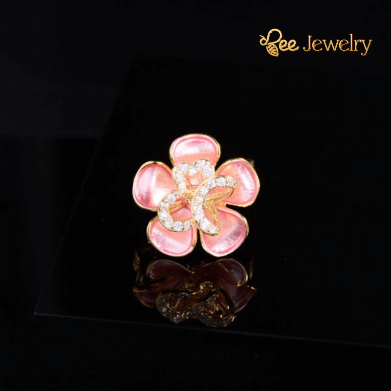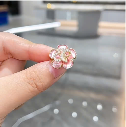 Hãy tưởng tượng, trên nền áo lụa mềm mại, hay trên chiếc áo khoác dạ thanh lịch, chiếc cài áo hoa anh đào điểm xuyến nhẹ nhàng, tỏa sáng dịu dàng. Hình ảnh hoa anh đào được tái hiện một cách tinh tế, với những đường nét mềm mại, uyển chuyển và vẻ ngoài thanh thoát. Pha lê trắng sáng lấp lánh được đính kết khéo léo, tạo nên hiệu ứng lấp lánh đầy mê hoặc, thu hút mọi ánh nhìn. Cánh hoa được tráng men hồng sáng bóng, mang đến màu sắc tươi tắn và rạng rỡ.
