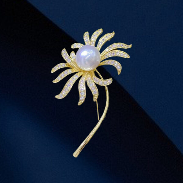 Trâm Cài Áo Hoa Cúc Kim Cương Đính Ngọc Trai Cao Cấp – Nét Thanh Lịch, Tươi Tắn