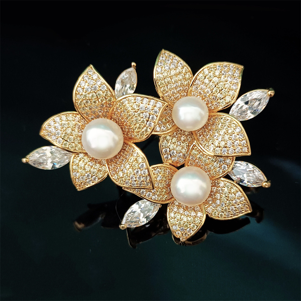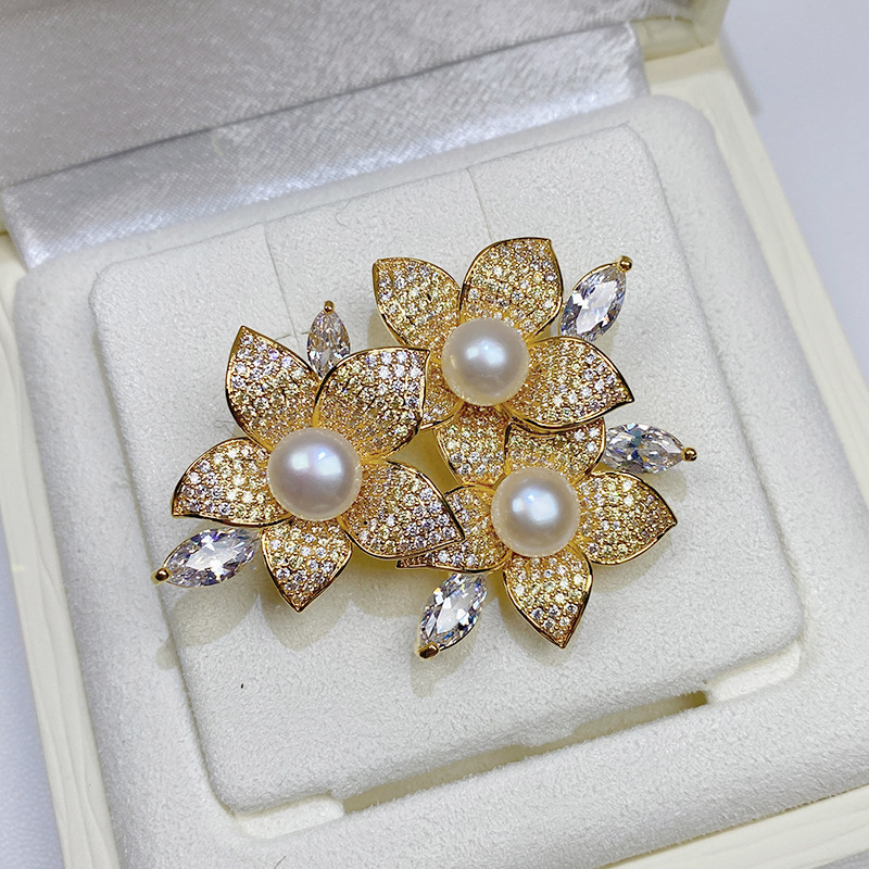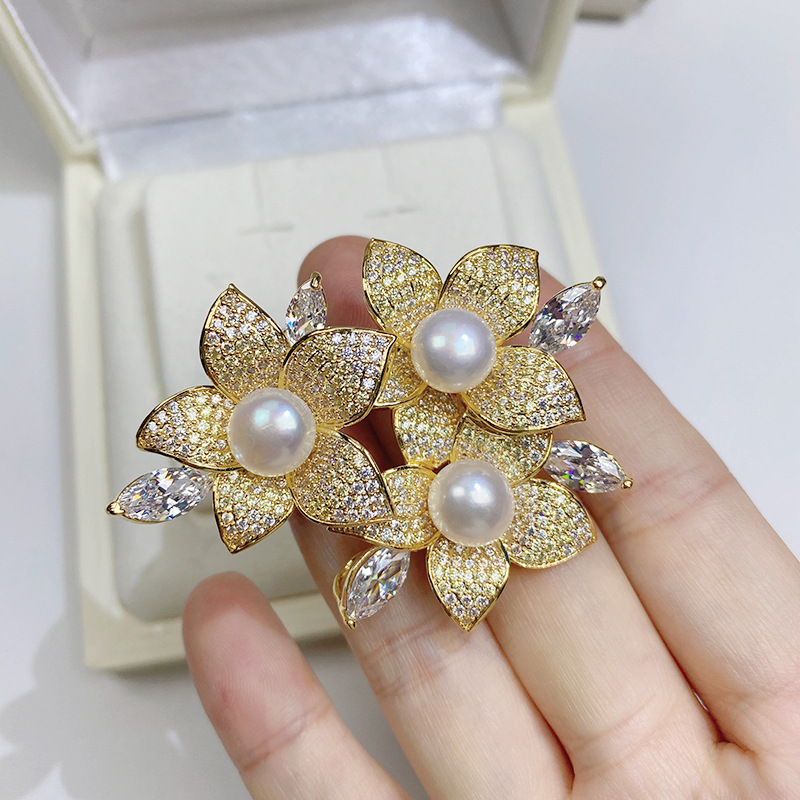 Trâm cài áo hoa đính ngọc trai kim cương – Biểu tượng của sự thanh lịch và quý phái