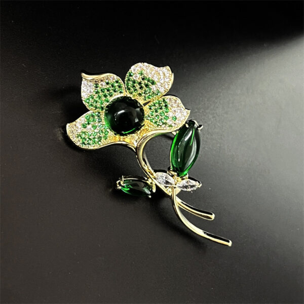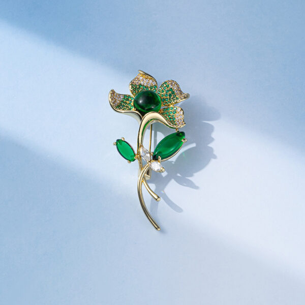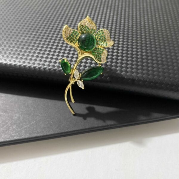 - Sự kết hợp giữa hình tượng hoa sen xanh và ngọc lục bảo tạo nên một tổng thể hài hòa, sang trọng và quý phái. Chiếc trâm cài áo hoa sen không chỉ là một món phụ kiện mà còn là biểu tượng của phong cách thời trang tinh tế và đẳng cấp.