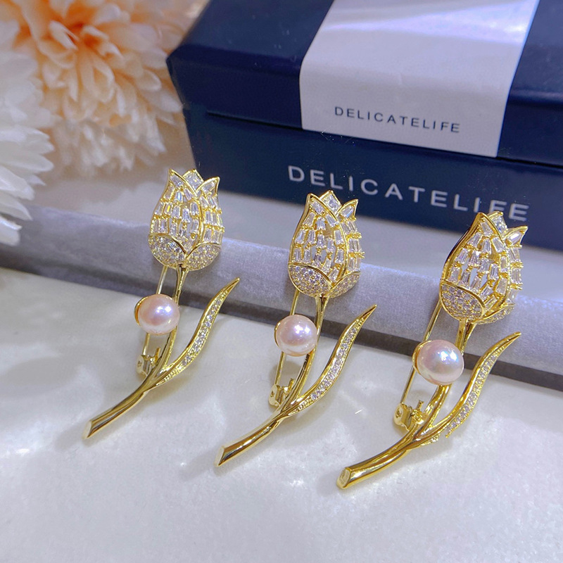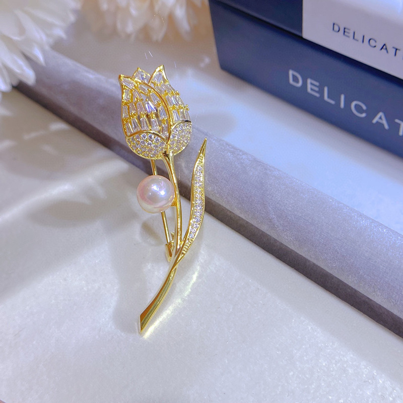 Trâm Cài Áo Hoa Tulip Ngọc Trai Cao Cấp – Sang Trọng & Quyến Rũ