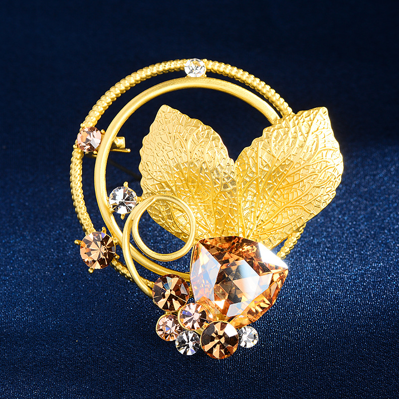 Trâm cài áo lá vàng đính pha lê