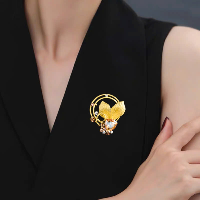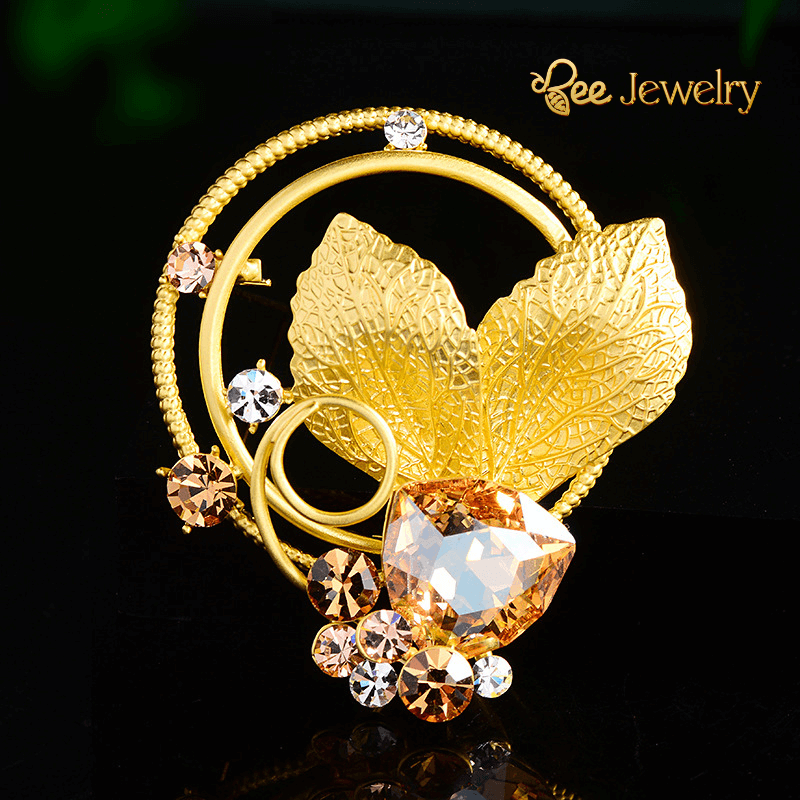 Chào đón mùa thu đông sang trọng và tinh tế với trâm cài áo lá vàng đính pha lê – một tuyệt tác trang sức mang đến vẻ đẹp lộng lẫy và kiêu sa cho phái đẹp. Lấy cảm hứng từ những chiếc lá vàng rơi mùa thu, trâm cài áo toát lên vẻ đẹp lãng mạn, cổ điển, hòa quyện cùng nét hiện đại, sang trọng.