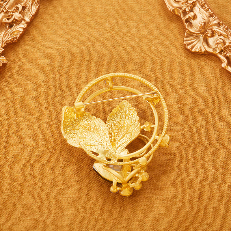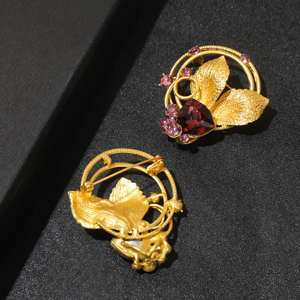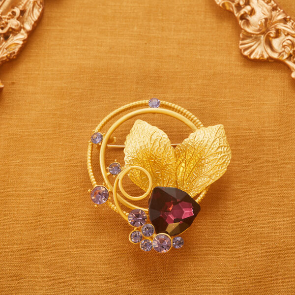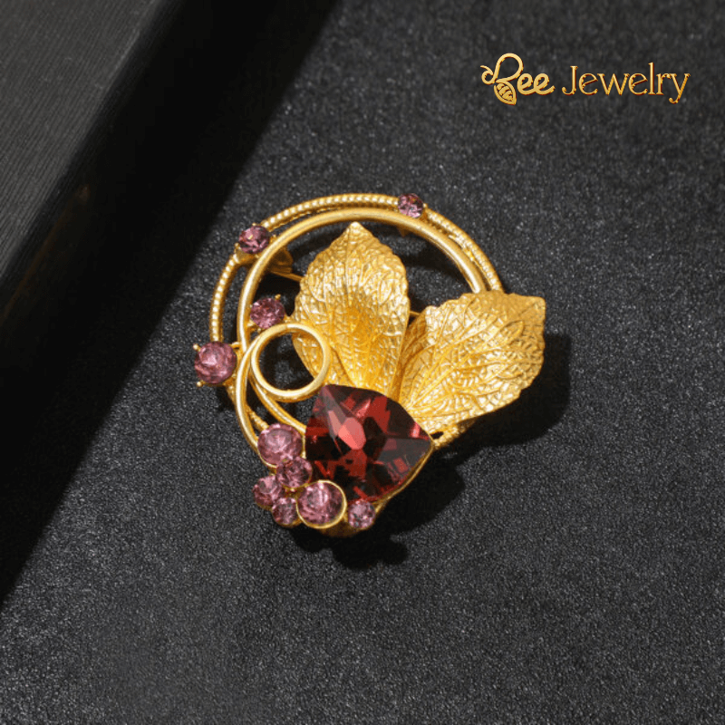 Trâm Cài Áo Lá Vàng Đính Phale Đỏ