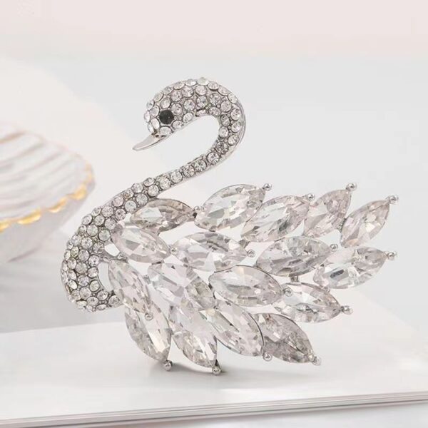 Cài Áo Thiên Nga Đính Pha Lê Trắng – Nét Thanh Lịch Tinh Khôi, Vạn Phần Say Đắm