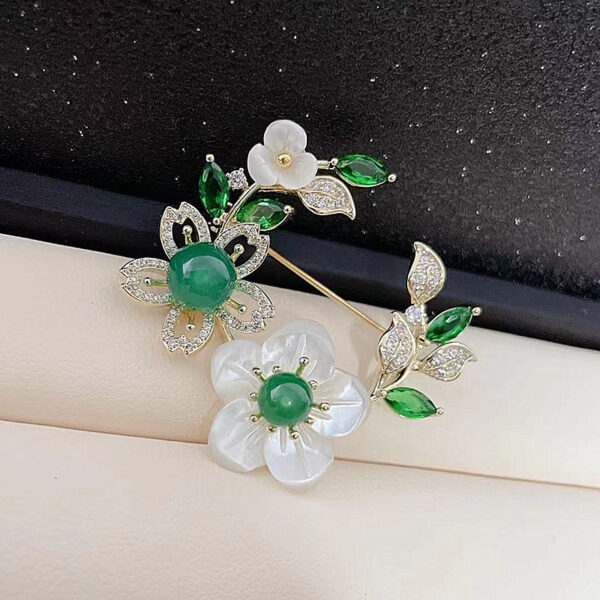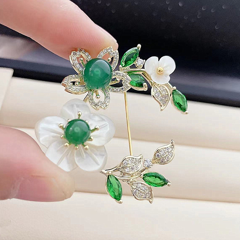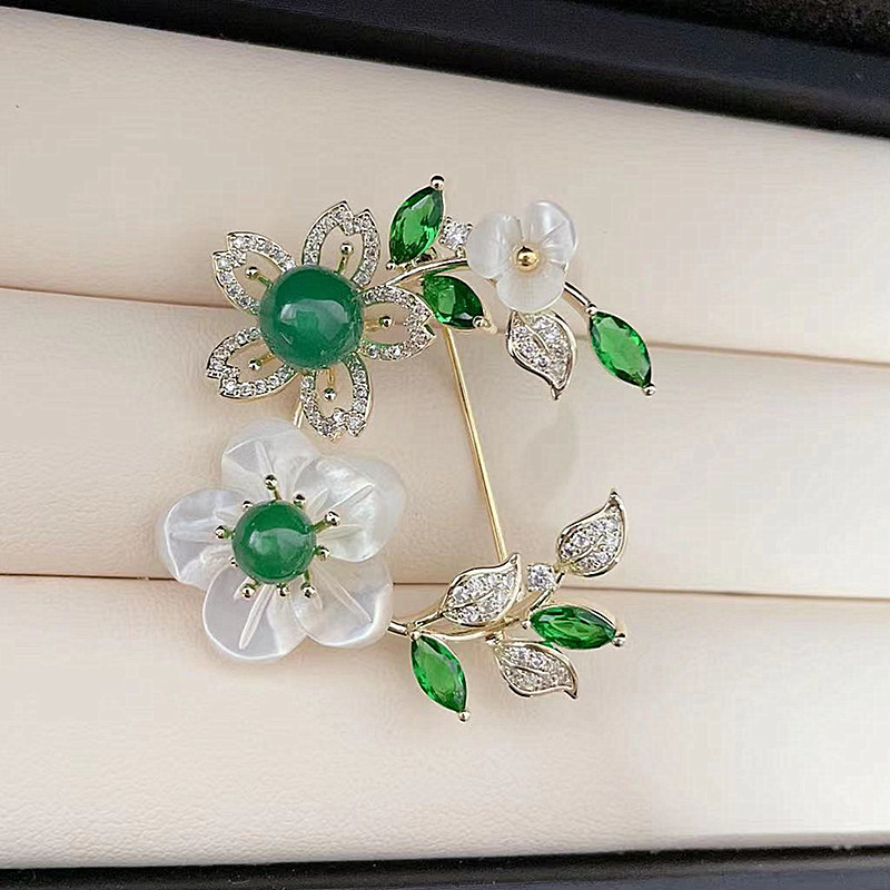 Trâm Cài Áo Vòng Hoa Đính Ngọc Lục Bảo Cao Cấp – Nét Thanh Lịch, Sang Trọng Tột Bậc