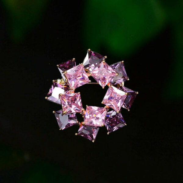 Điểm tô vẻ đẹp hiện đại và tinh tế cho trang phục của bạn với trâm cài áo vòng hoa kết đá hình học cao cấp. Sản phẩm là sự kết hợp độc đáo giữa thiết kế hình học sáng tạo, chất liệu thượng hạng và sắc hồng tím quyến rũ từ những viên phale, mang đến một phụ kiện đẳng cấp và nổi bật.